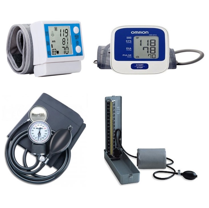 1. Máy đo huyết áp điện tử: có 2 loại: máy đo huyết áp cổ tay và máy đo huyết áp điện tử băng quấn bắp tay: tiện lợi, dễ sử dụng, người bệnh có thể tự kiểm tra huyết áp tại nhà và bất cứ lúc nào.